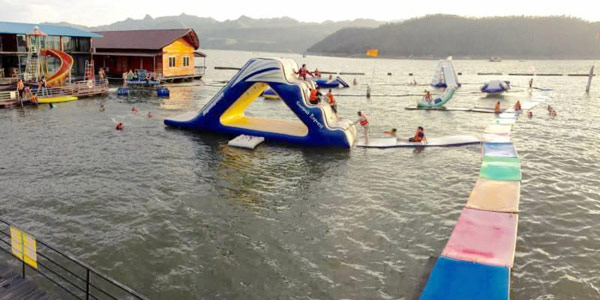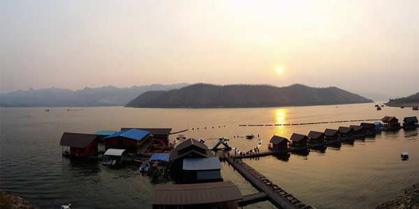 ที่พักริมน้ำ ในเขื่อนศรีนครินทร์ ล่องแพเปียก เครื่องเล่นน้ำ ( River View )